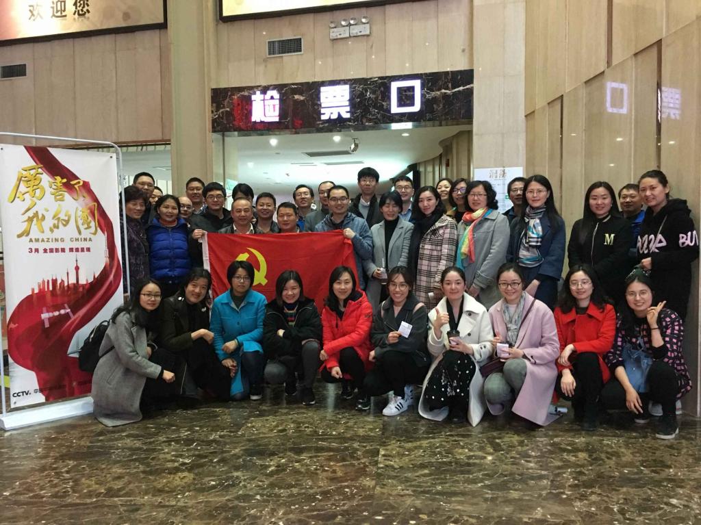 (通讯员 刘国华)为深入学习贯彻党的十九大精神,在广大教职工中强化爱祖国、爱人民、爱劳动、爱科学、爱社会主义的公德,更好进行爱国主义、集体主义、辩证唯物主义和历史唯物主义教育,3月23日下午,党委宣传部党支部书记刘国华同志联合党委学工部、地质调查研究院党支部42名同事走进影院观看专题记录片《厉害了,我的国》。