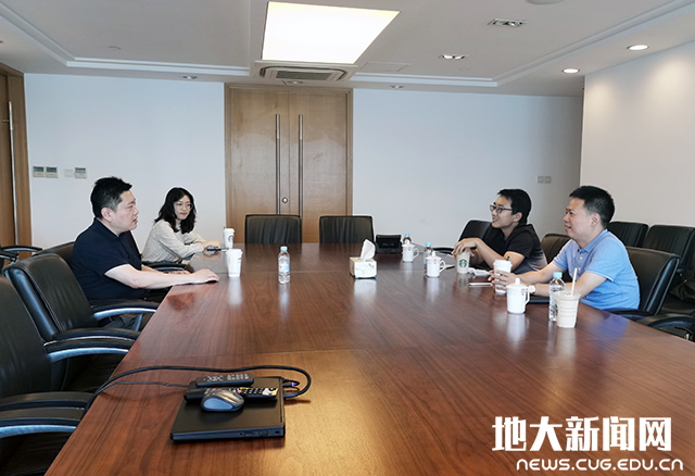 在上海勘察设计研究院(集团)有限公司,该集团副总裁、上海校友会会长、我校1990级校友金宗川(右一)介绍公司发展情况