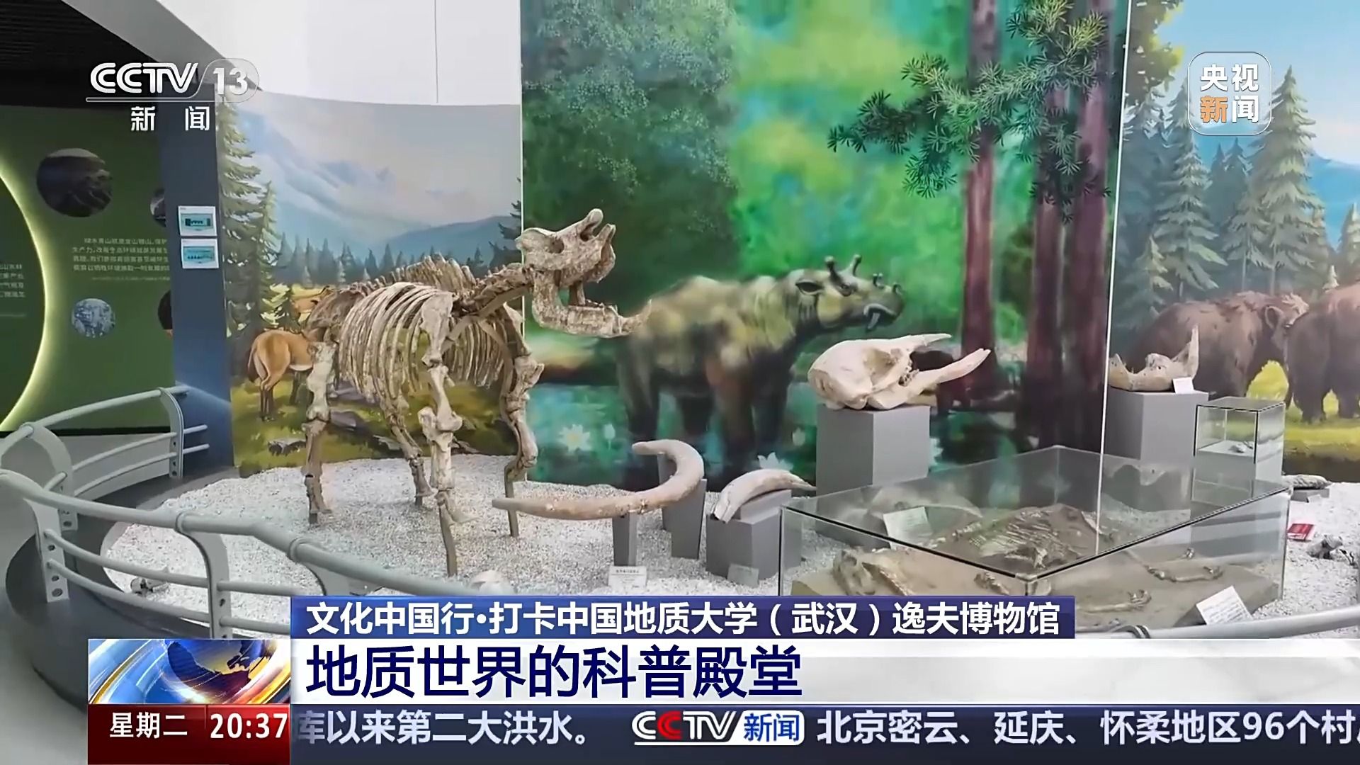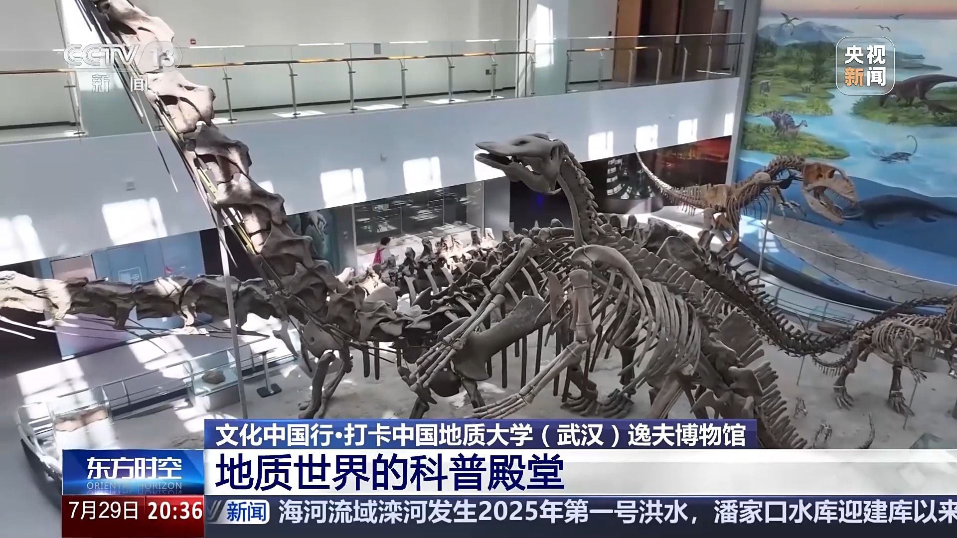 总台央视记者 韩冰:地大逸夫博物最引人瞩目的就是恐龙化石。黑龙江满洲龙化石,它生活在6600万年前的白垩纪末期。它的嘴巴长得很像鸭子,体长超过10米,体高达到了6.1米,相当于两层楼这么高,体重足足有10吨,它是我国境内发现的第一种恐龙化石,被誉为“神州第一龙”。
