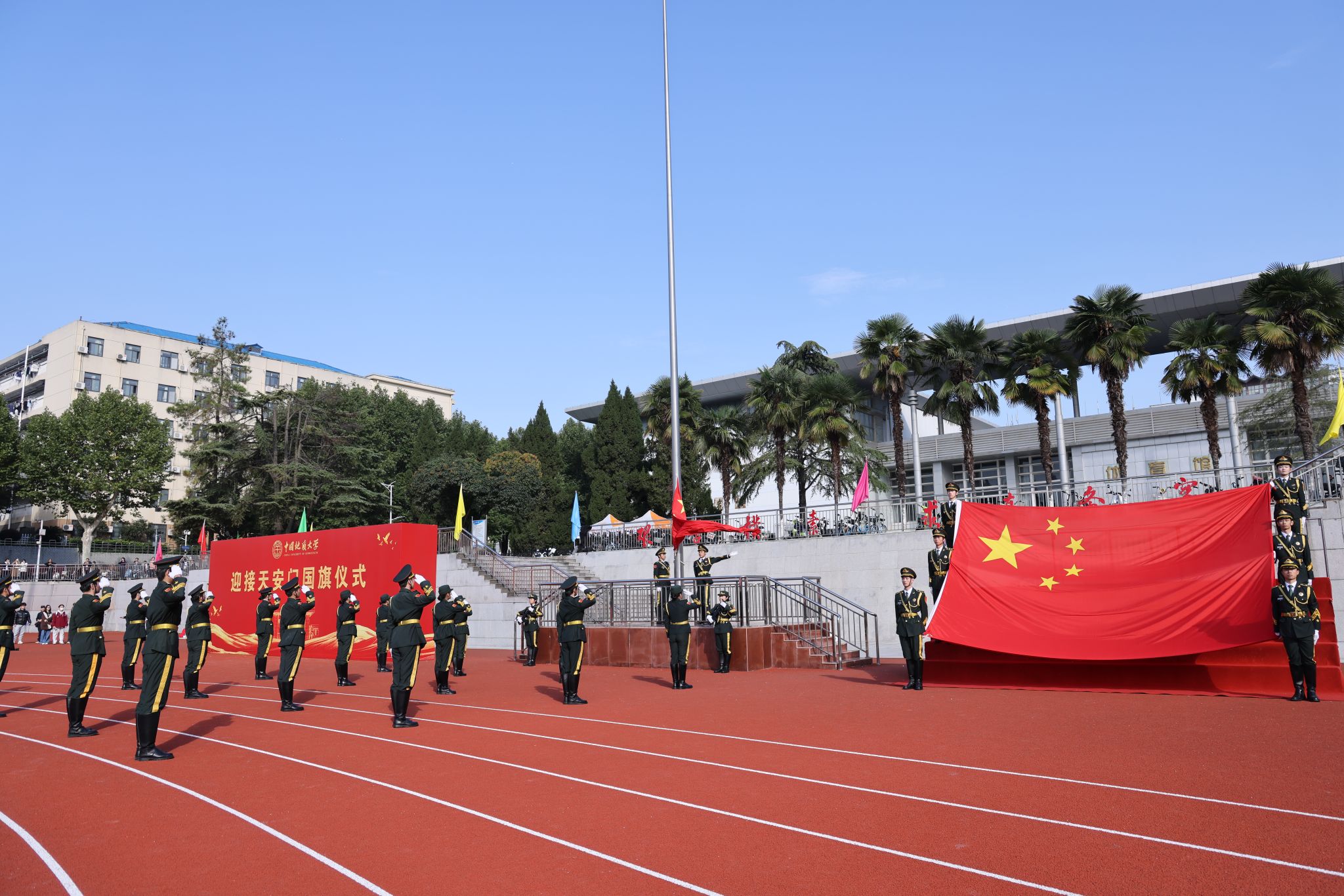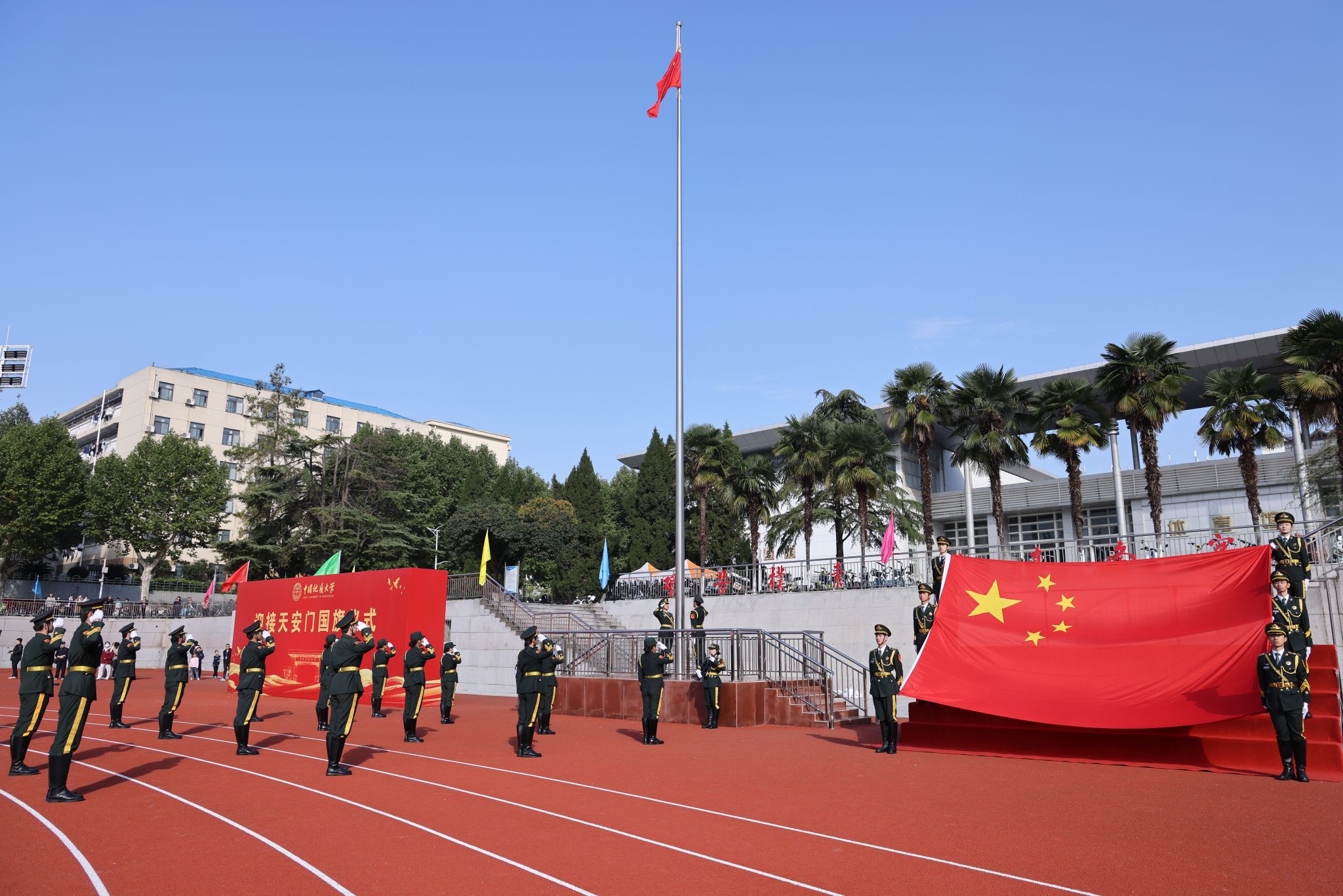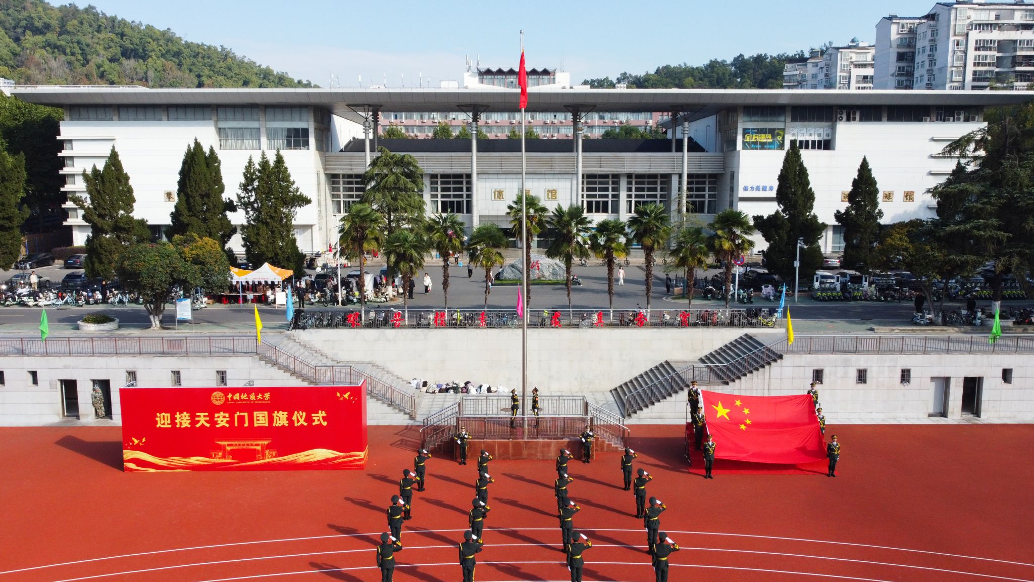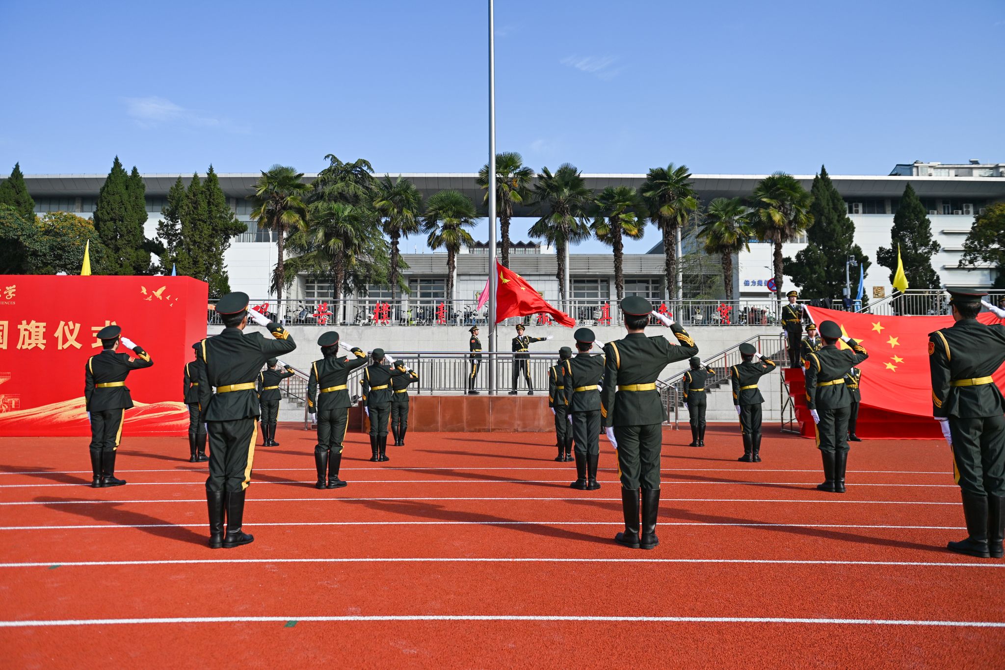 10月24日,我校在南望山校区西区运动场隆重举行迎接天安门国旗仪式。全体在校校领导,各学院、管理与服务机构相关负责人,以及师生代表参加仪式。