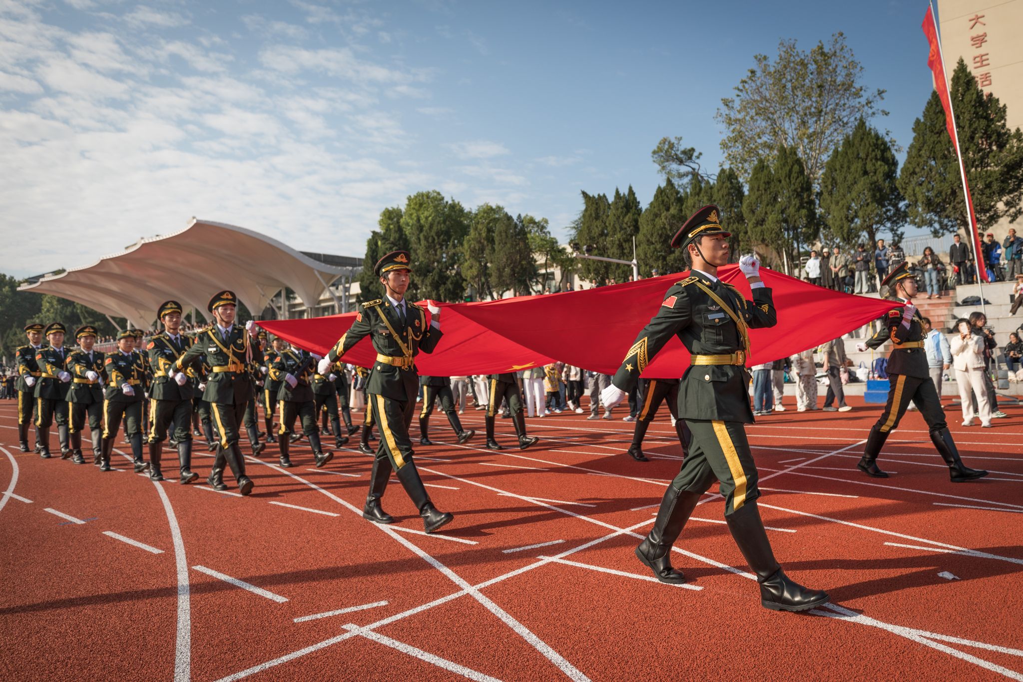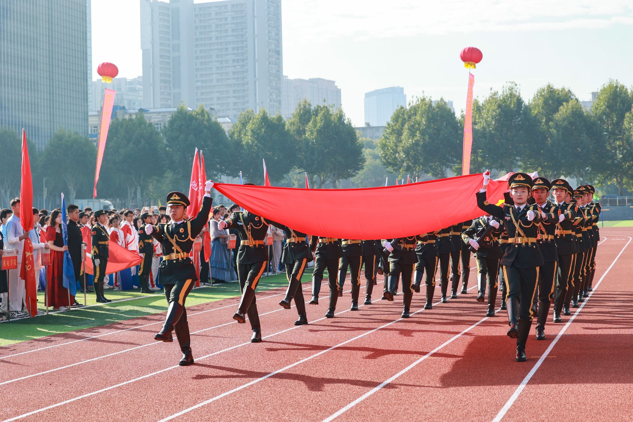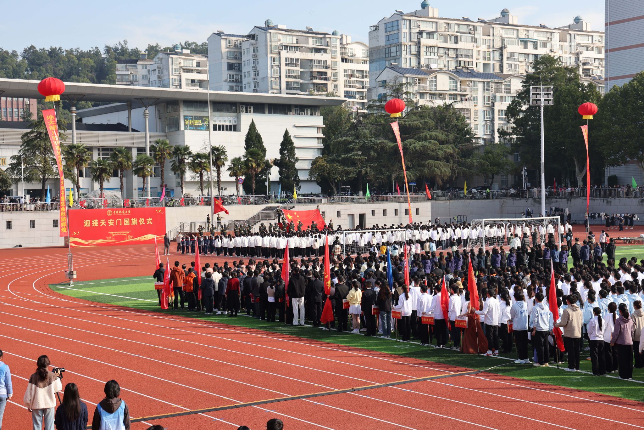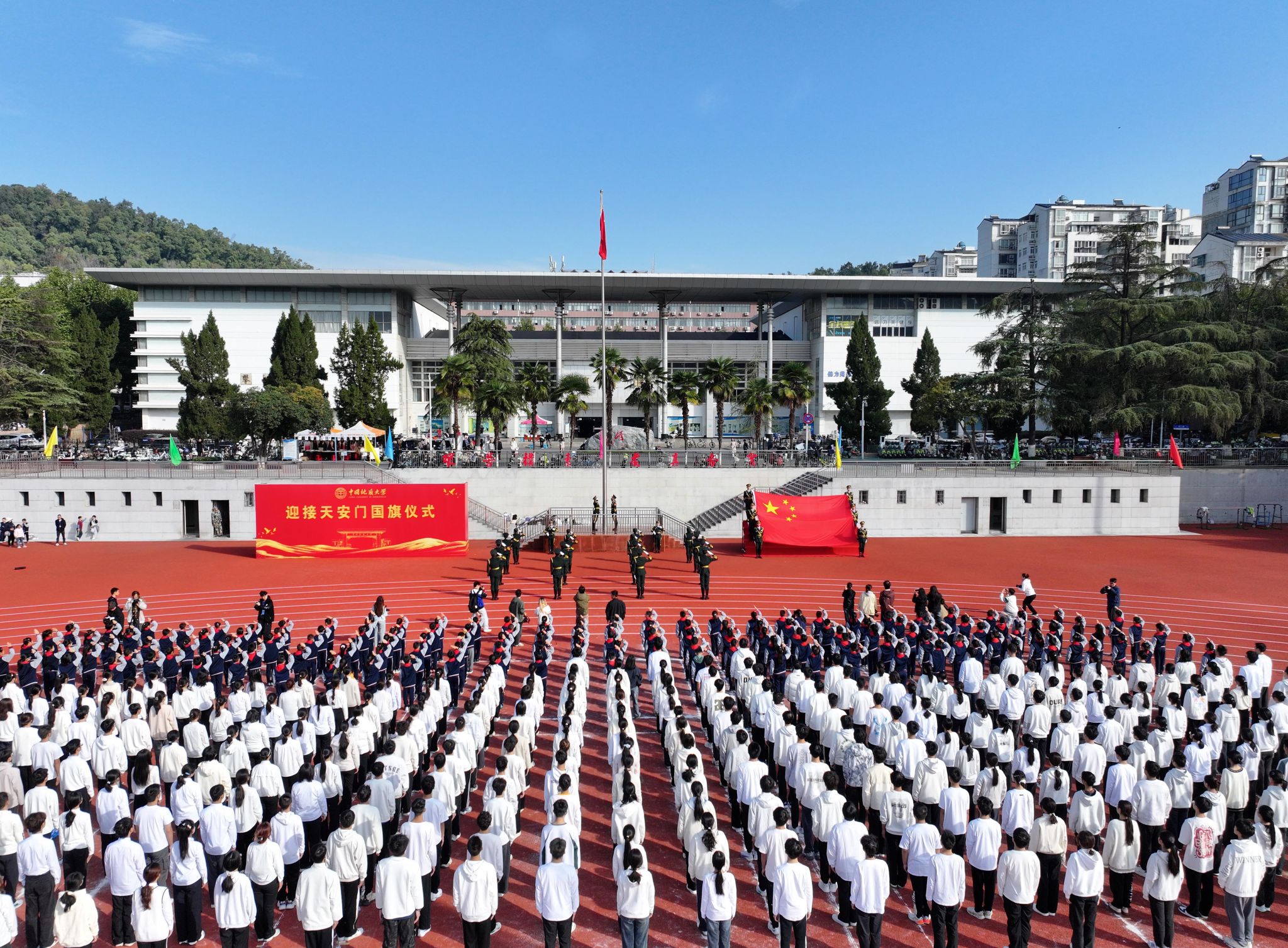 10月24日,我校在南望山校区西区运动场隆重举行迎接天安门国旗仪式。全体在校校领导,各学院、管理与服务机构相关负责人,以及师生代表参加仪式。