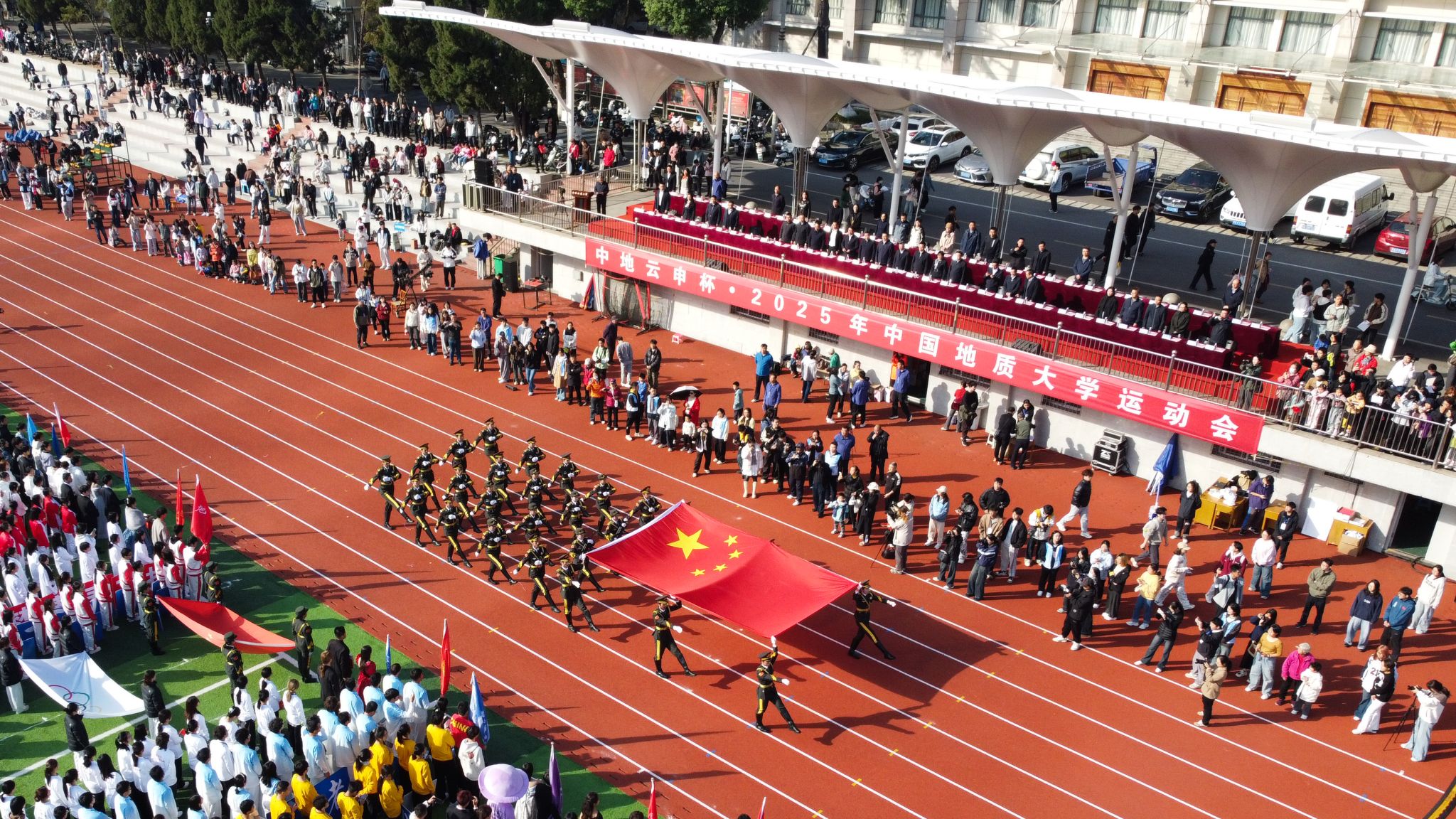 地大新闻网讯 晨光启幕,五星闪耀。今年的秋季运动会上,迎来了一面具有特殊意义的国旗,它于2012年11月7日,中国地质大学60周年校庆日,在天安门广场升起,见证着大国崛起的光荣和梦想。这面国旗将让攀登精神与爱国情怀在地大交相辉映,点燃为梦想拼搏的火炬。