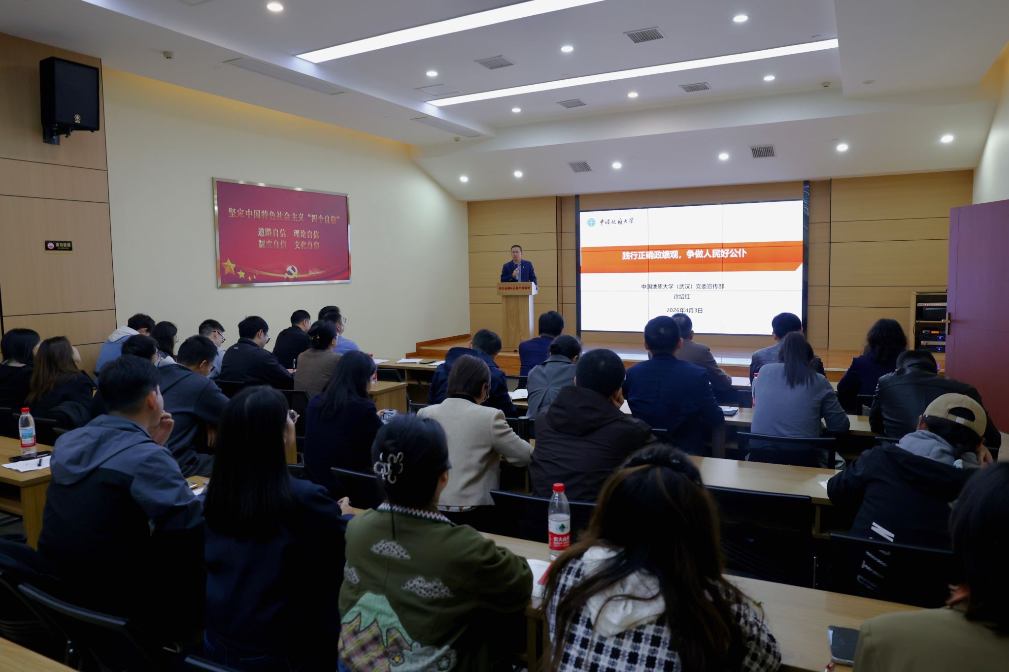 宣传部党支部书记徐绍红系统阐释了政绩观的内涵,深入剖析了政绩观与权力观、地位观、人民观、群众观及世界观、人生观、价值观的内在逻辑关系,梳理了党中央bv伟德国际体育官方网站正确政绩观的重要部署与要求。他结合bv伟德国际体育官方网站总书记有关树立和践行正确政绩观重要论述和典型案例,详细阐述了践行正确政绩观的实践路径。